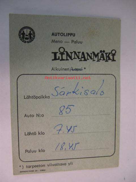 Autolippu meno-paluu Linnanmäki/Jaakkoo Taara Oy