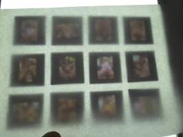 Eroottinen valokuvasarja, 12 diakuvaa, hankittu kansainvälisiltä kuvatoimistoilta käytettäväksi kotimaisten miestenlehtien artikkelien / juttujen kuvituksena