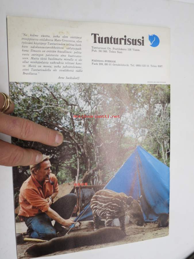 | Saatavilla | 1 kpl | | Julkaisuvuosi | 1973 | | Sivuja | 20 | | Kunto | K2 | | Yhtä sivu leikelty | | Sidonta/painoasu | Nidottu (pehmeäk.) | | Kielet | Suomi |