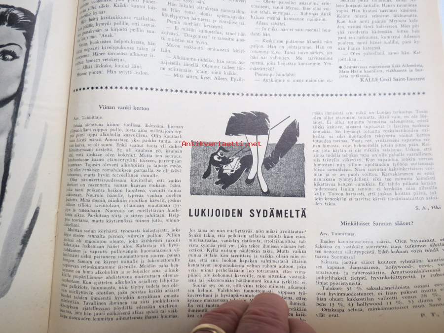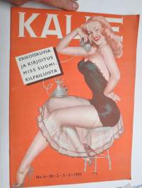 Kalle 1955 nr 4, Miss Suomi 1955 Inga-Britt Söderberg, Englannin Kyllikki Saari, Unelmavartaloinen revyykaunotar Lippe Hokkanen myöh. Suomalainen kesytti Karin