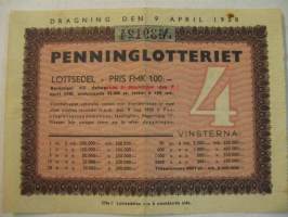 Raha-arpajaiset 9.4.1938 -arpalippu
