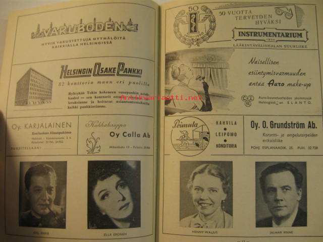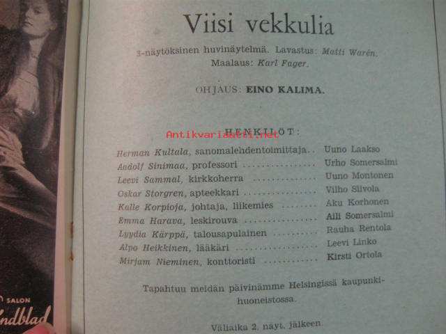 14,7 x 20,6 cm ohjelma. Maineikas näyttelijäkaarti, kuvat.