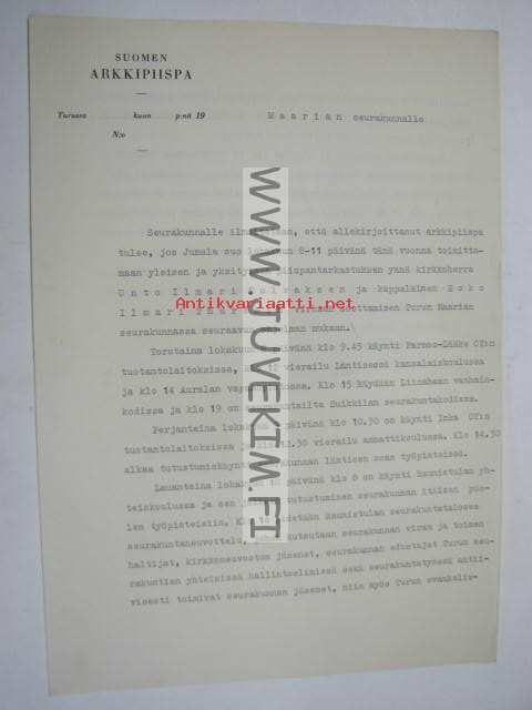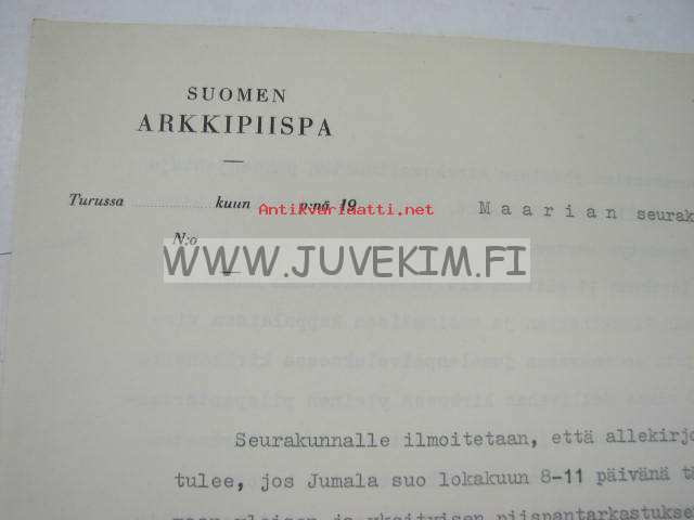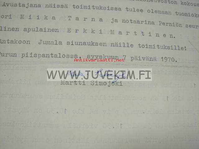 Maarian seurakunnan kirkkoherran virkaaanasettaminen ja piispantarkastus 1970, Unto Ilmari Tolvas -allekirjoitus arkkipiispa Martti Simojoki