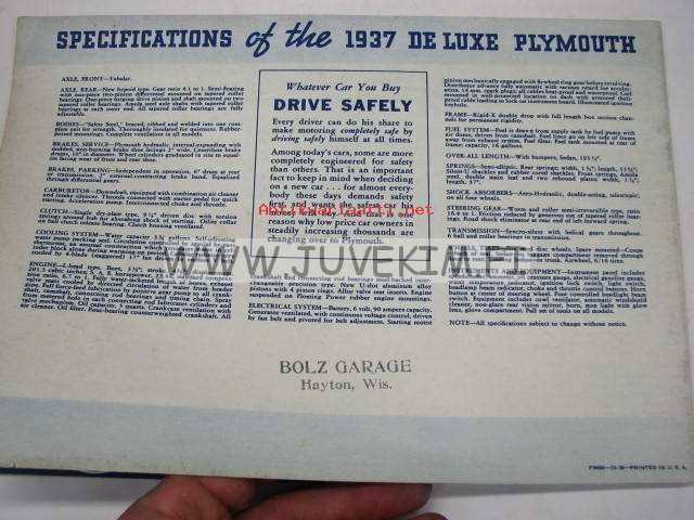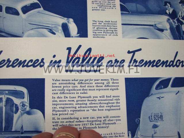 Plymouth 1937 -myyntiesite