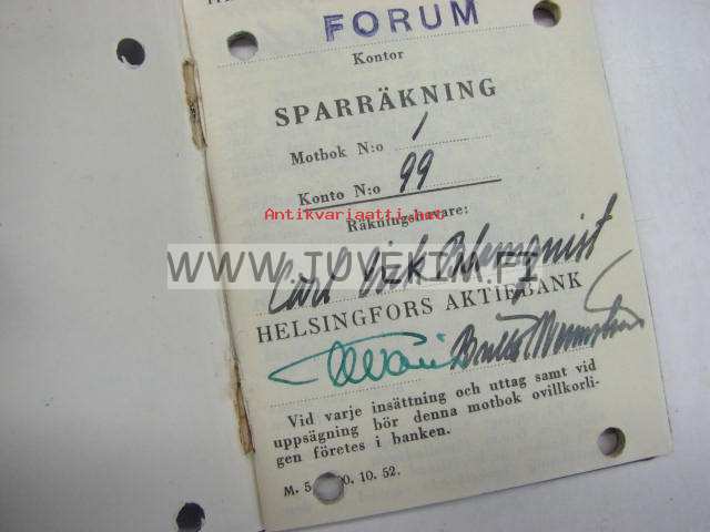 Helsingfors Aktiebank, Carl Blomqvist -pankkikirja