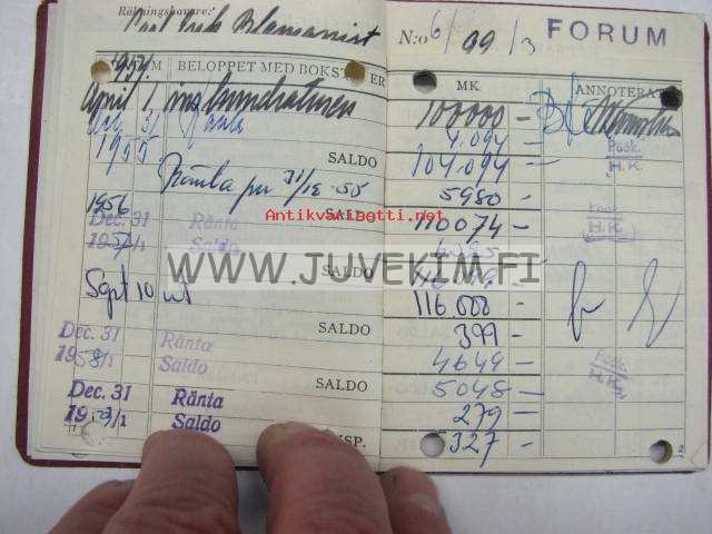 8 x 11 cm pankkikirja.