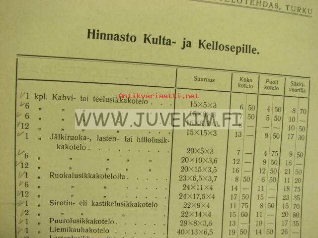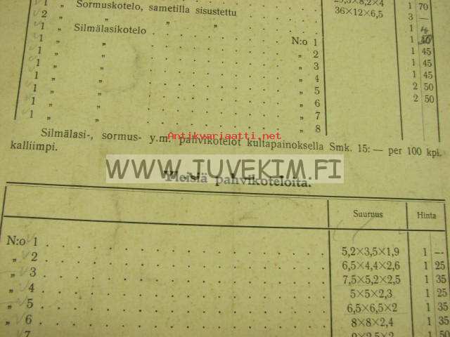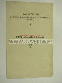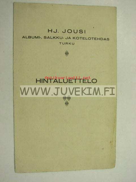 Hj. Jousi Albumi-, salkku- ja kotelotehdas hintaluettelo