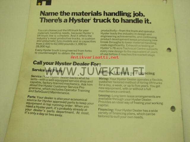 Hyster Industrial Truck Catalogue -myyntiesite englanniksi