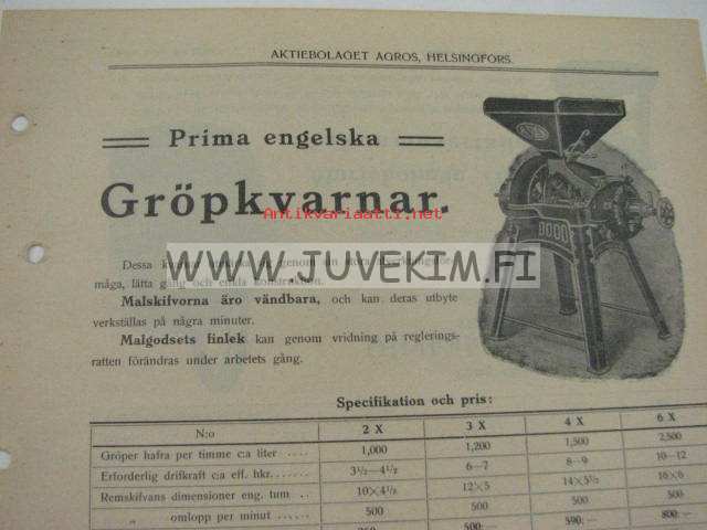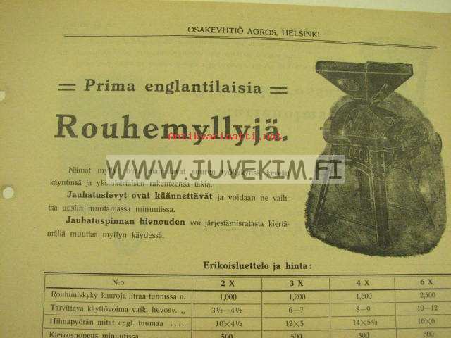 Rouhemyllyjä, öljykakunmurentajia -Agros Oy myyntiesite