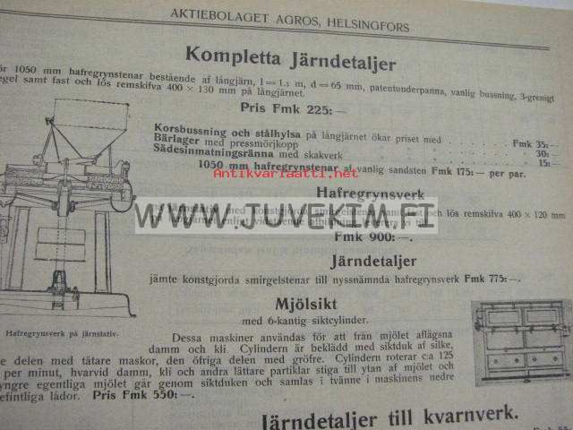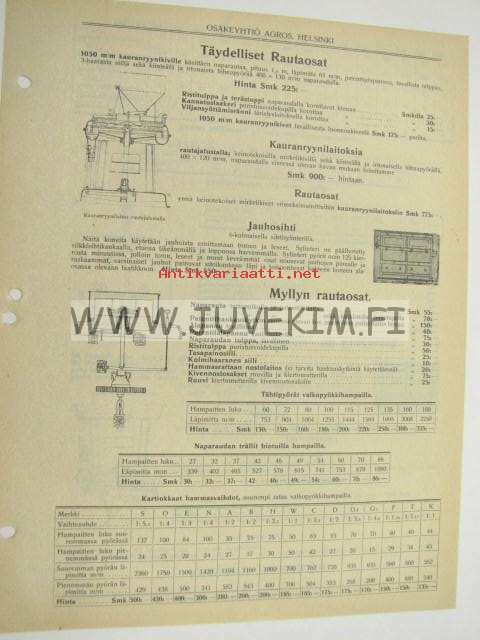 Myllykoneistojen rautaosat -Agros Oy myyntiesite