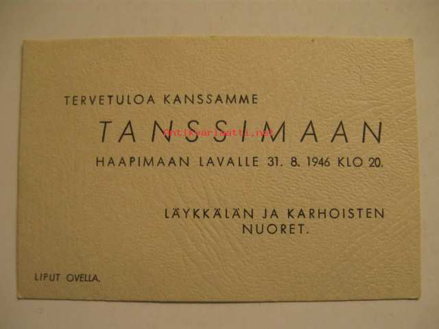Tervetuloa kanssamme tanssimaan Haapimaan lavalle 31.8.1946 Läykkälän ja Karhoisten nuoret