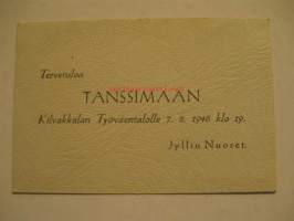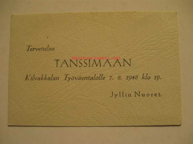 Tervetuloa tanssimaan Kilvakkalan Työväentalolle 7.8.1948 Jyllin nuoret
