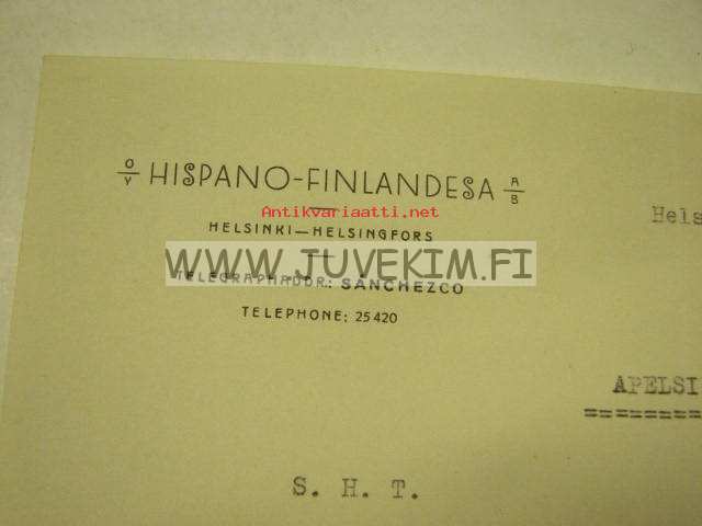 Oy Hispano-Finlandesa Ab Helsinki 24.10.1932 -asiakirja