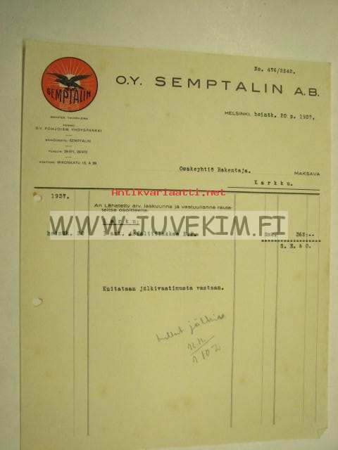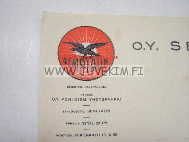 Oy Semptalin Ab Helsinki 20.7.1937 -asiakirja
