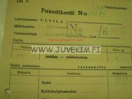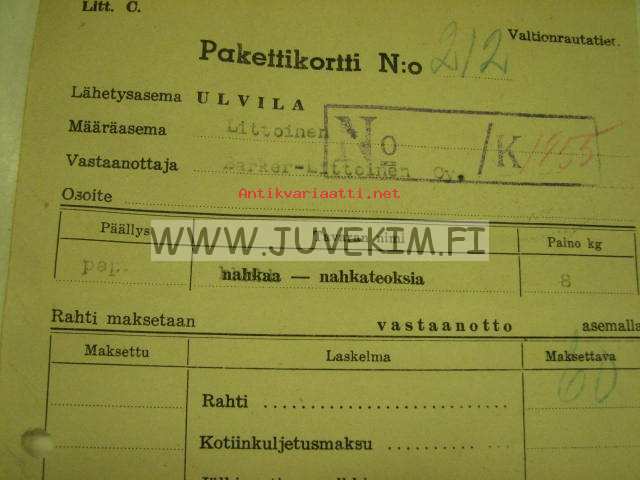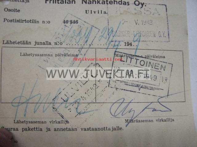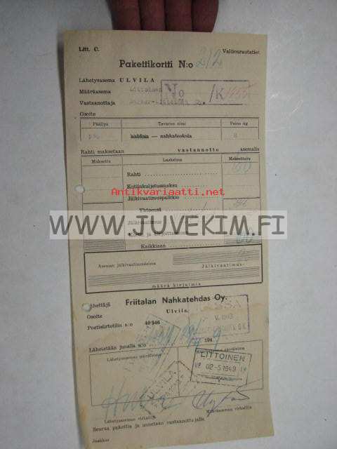 Valtionrautatiet -pakettikortti Friitalan Nahkatehdas Oy Ulvila