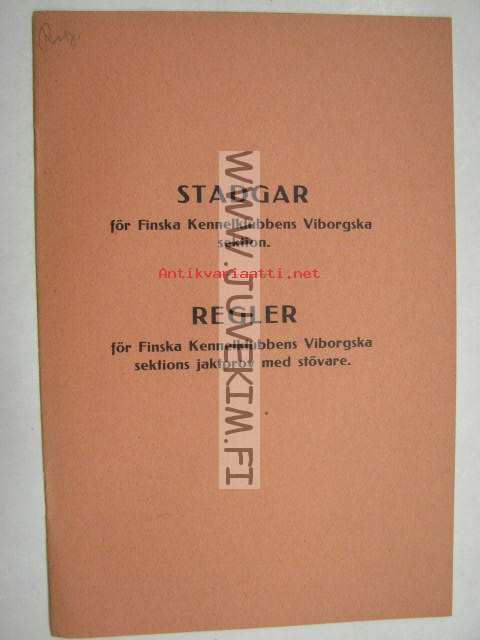 Stadgar för finska Kennelklubbens Viborgska sektion / Regler för Finska Kennelklubbens Viborgska sektions jaktprov med stövare -Viipurin Kennelkerhon