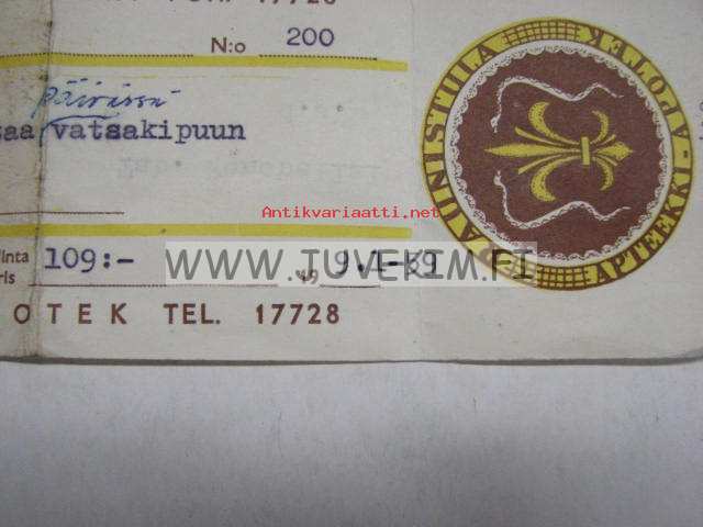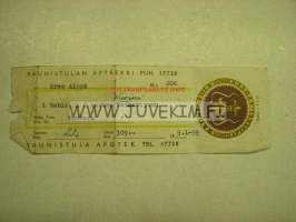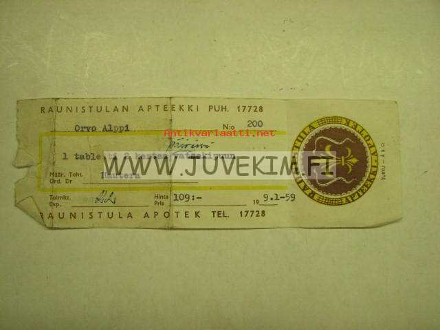 Raunistulan Apteekki Turku 9.1.1959 -apteekkisignatuuri