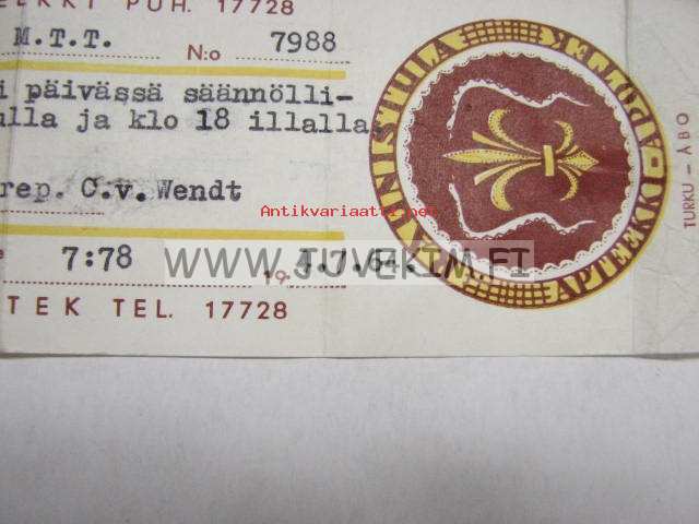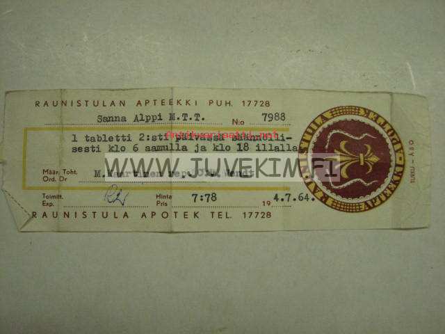 Raunistulan Apteekki Turku 4.7.1964 -apteekkisignatuuri