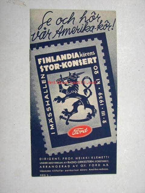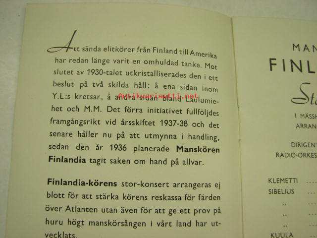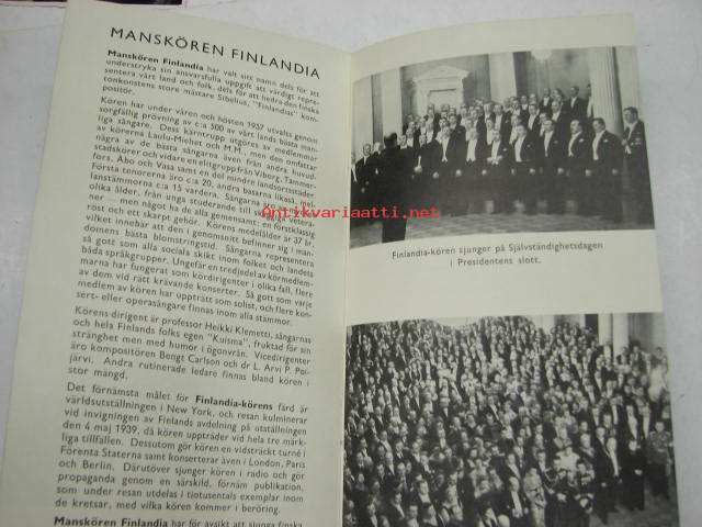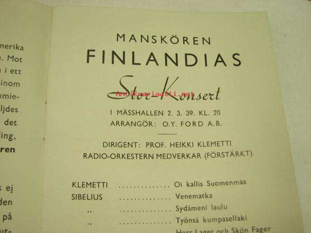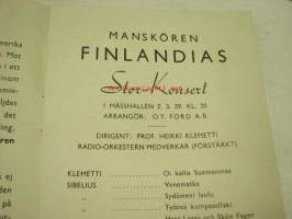 Manskören Finlandias Stor-Konsert 2.3.1939 -ohjelma