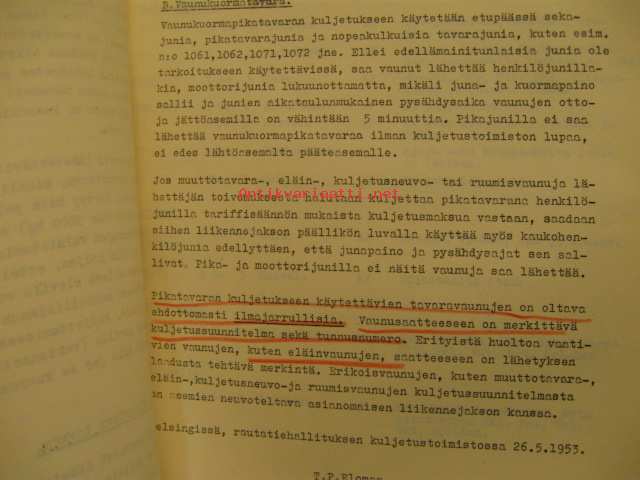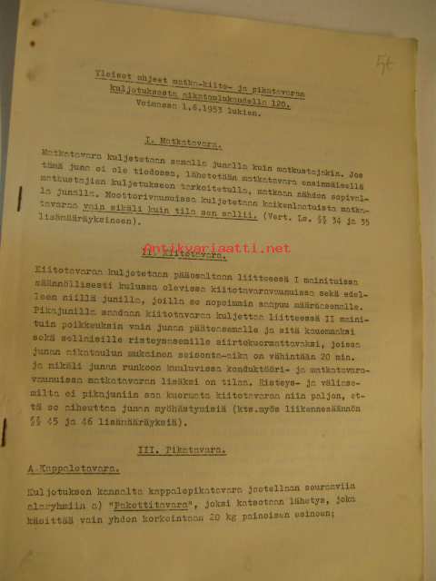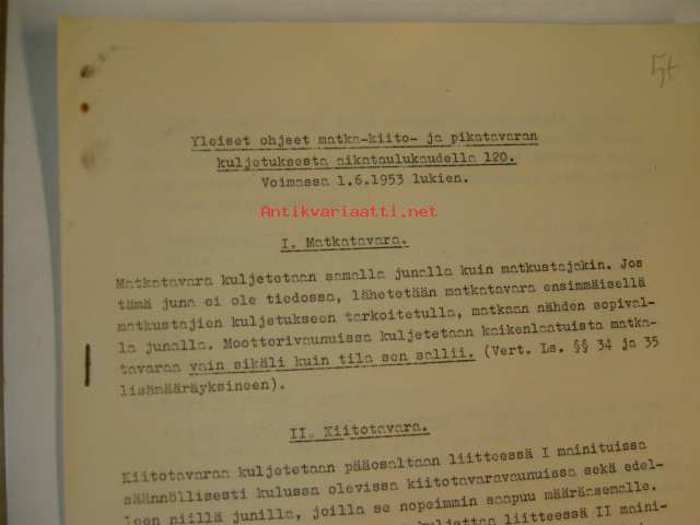 Yleiset ohjeet matka- , kiito- ja pikatavaran kuljetuksesta aikataulukaudella 120, voimassa 1.6.1953 alkaen
