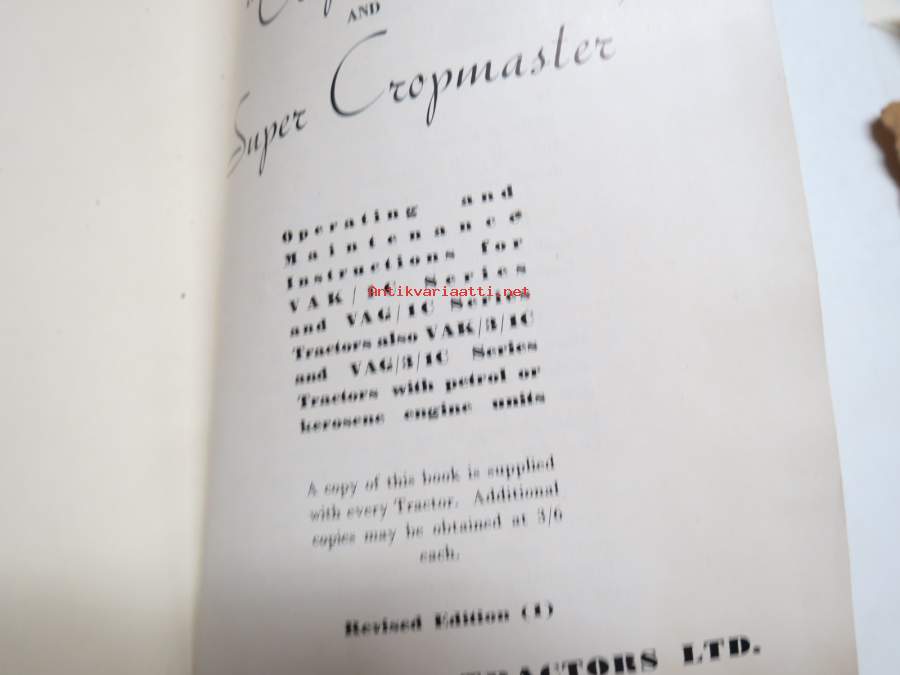 David Brown The Cropmaster and Super Cropmaster Series Instruction Book traktori huolto- / käyttöohjekirja - alkuperäinen Suomeen toimitetun traktorin mukana tullut