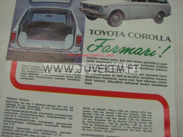 Toyota mainosviiri -autoliikkeisiin tarkoitettua mainosmateriaali, muovia, arvilta 70-luvulta, 4 kpl erä