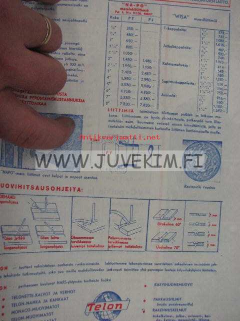 Napoleon -vesijohtoputket Nars Yhtymä Oy Pietarsaari -esite