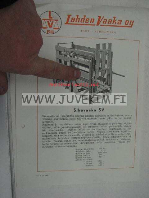 Lahden Vaaka Oy Sikavaaka SV -esite