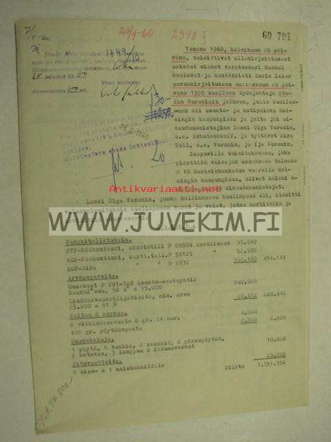 Perunkirjoitus työnjohtaja Stefan Voronin Helsinki 1959 -asiakirjat