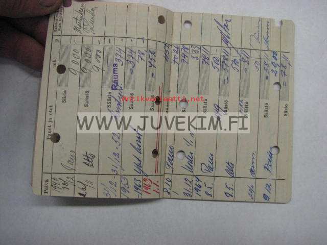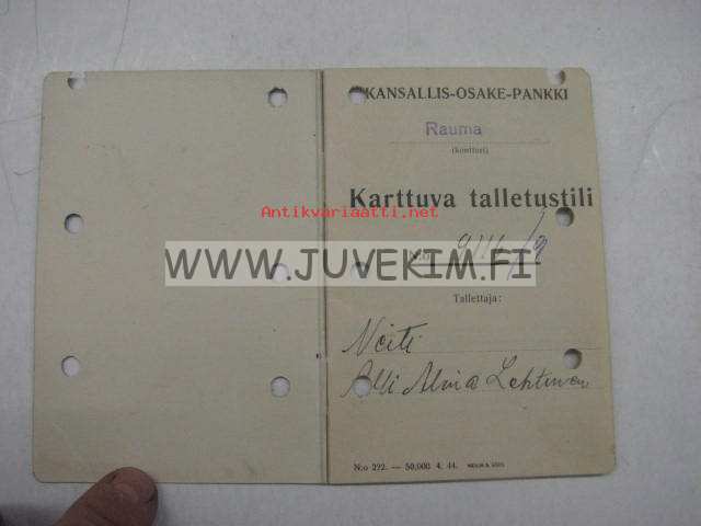 Kansallis-Osakepankki Rauma Karttuva talletustili Alli Alma Lehtinen 1946 -pankkikirja