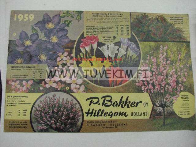 P. Bakker Oy 1959 -kukkasiemenluettelo