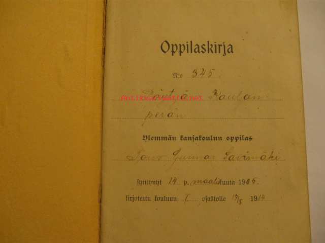 Pöytyän Kaulanperän ylemmän kansakoulun oppilaskirja Toivo Savimäki v.1915-1917