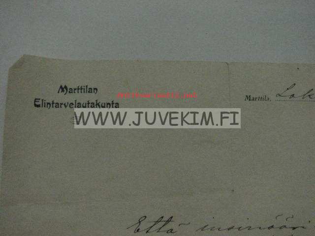 Marttilan Elintarvikelautakunta 5.10.1918 -asiakirja