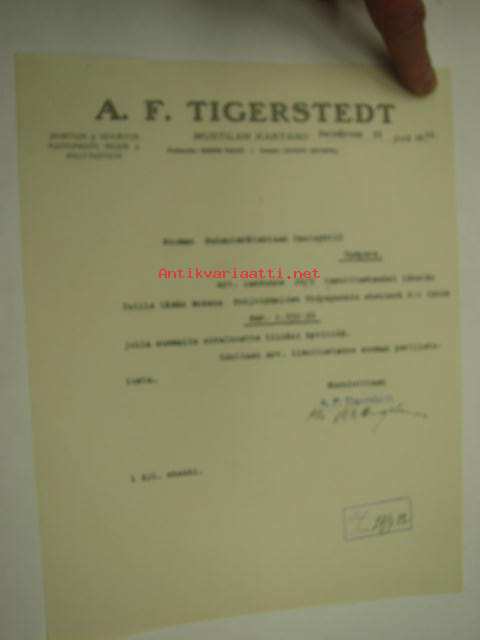 A.F. Tigerstedt Mustilan Kartano 22.7.1922 -asiakirja