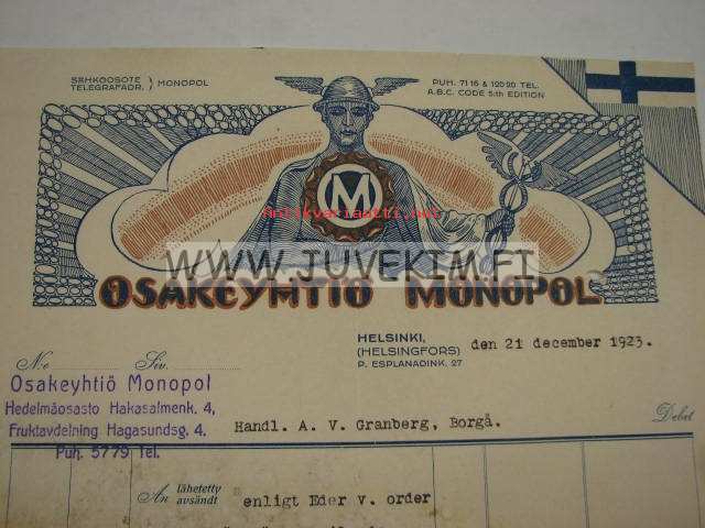 Osakeyhtiö Monopol, Helsinki 21.12.1923 -asiakirja