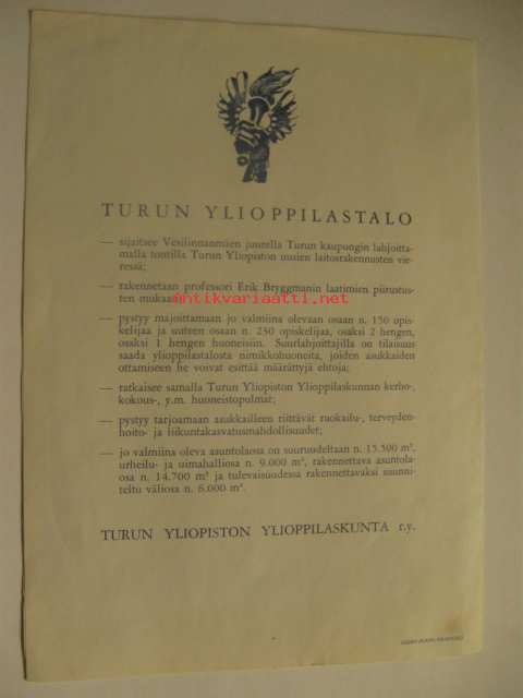 14,7 x 20,8 cm. Esite tehty ennenkuin Ylioppilastalo on valmistunut.