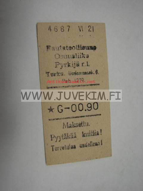 Rautateollisuus Osuusliike Pyrkijä r.l. -kassakuitti