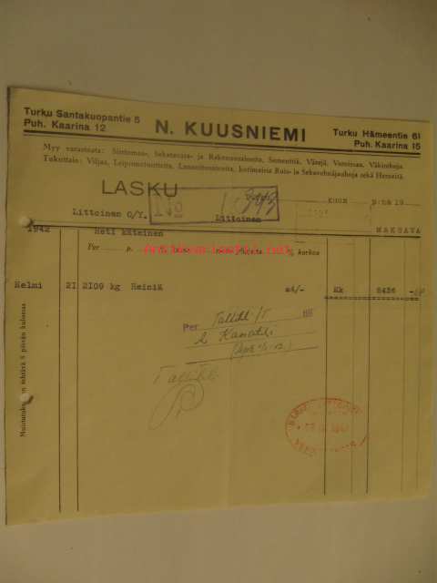 N.Kuusniemi (Turku, Kaarina) lasku 3.3.1942