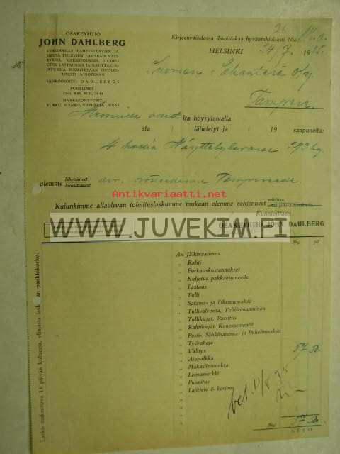 John Dahlberg AB, Helsingfors. Dokument 24.7.1925