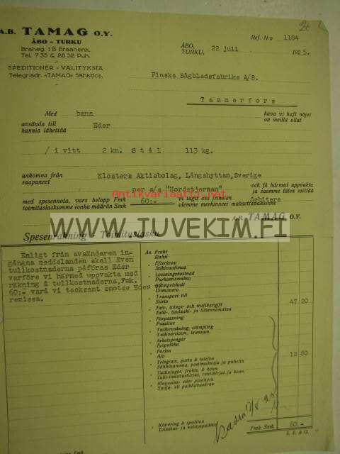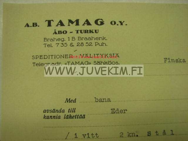 Tamag Oy Ab,Turku Åbo. Dokument 22.7.1925