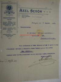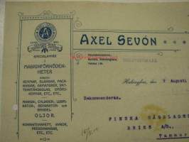 Axel Sevón Specialaffär i Maskinförnödenheter, Helsingfors. Dokument 9.8.1910