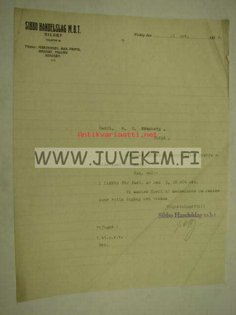 Sibbo Handelslag M.B.T. Nickby, Nikkilä 11.11.1924 -asiakirja