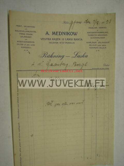 A. Mednikow, Helsinki 7.2.1923 -asiakirja
