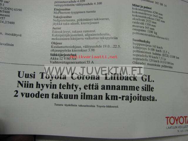 Toyota Corona Liftback GL 1979 -myyntiesite