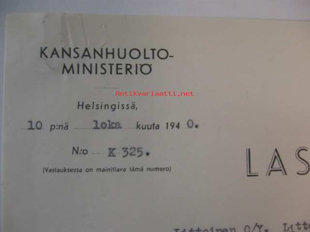 Kansanhuoltoministeriö, 10.10.1940 -asiakirja