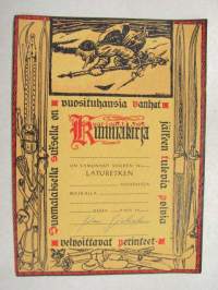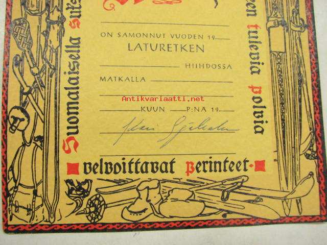15 x 20 cm laturetkelle osallistumisen kunniakirja. Valmiiksi allekirjoitettu.