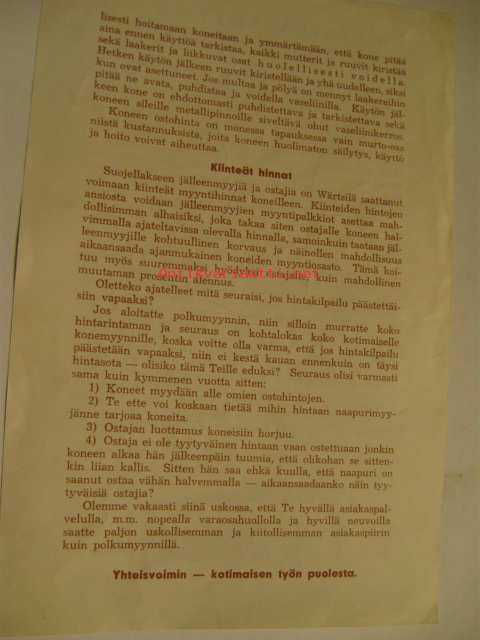 Wärsilä-Yhtymä O/Y selvittelee ajankohtaisia kysymyksiä myyjille