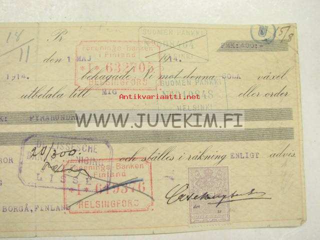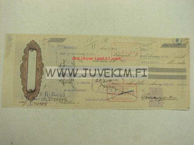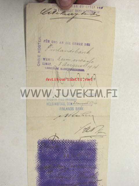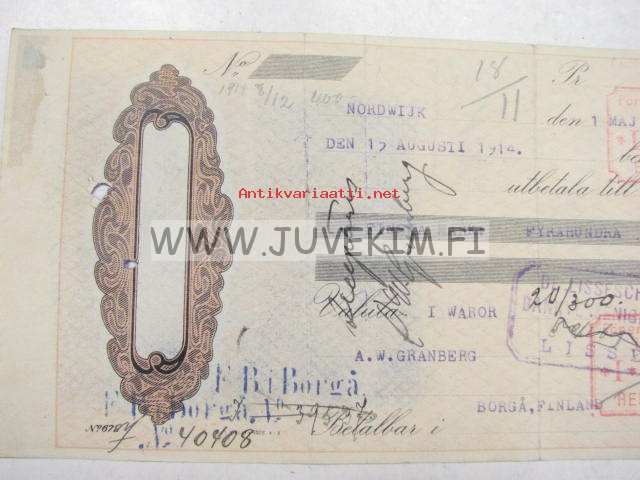 A. Granberg 15.8.1914 -vekselilomake
