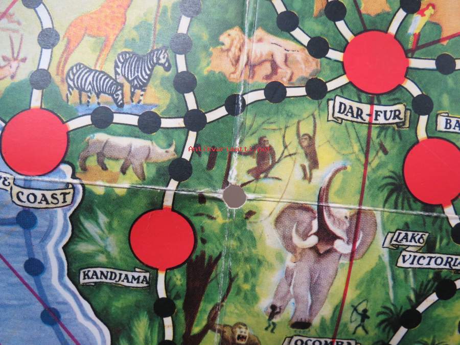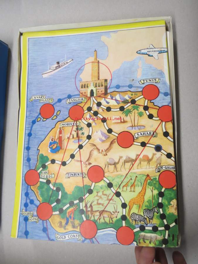 Afrikan Tähti / Afrikas stjärna -lautapeli, hyväkuntoinen pelipohja, laatikko korkeintaan tyydyttäväkuntoinen, nappuloita ja merkkejä puuttuu