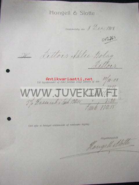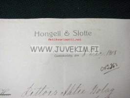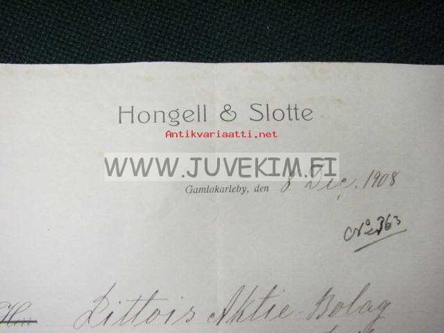Hongell & Slotte Gamlakarleby 8.12.1908 -asiakirja